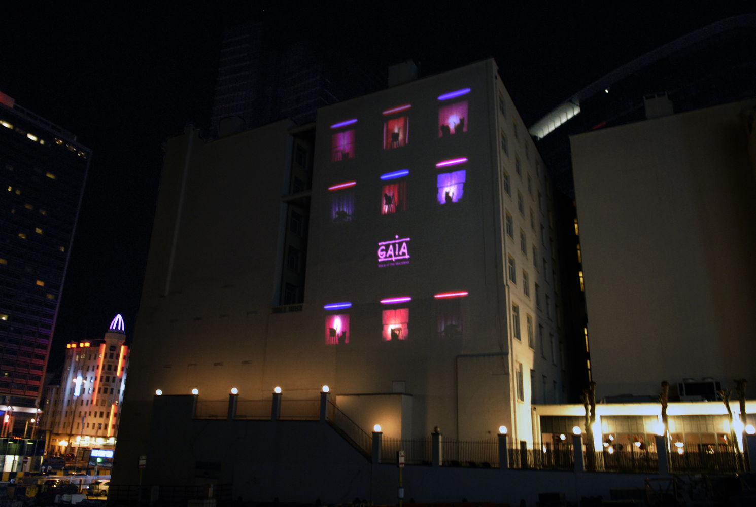 La projection aura lieu chaque soir du 28 janvier au 1er février 2014 inclus (entre 17h et 21h30) sur la façade SUD du Crowne Plaza. Les internautes peuvent également se balader dans le quartier rouge des chats via www.gaia.be.
